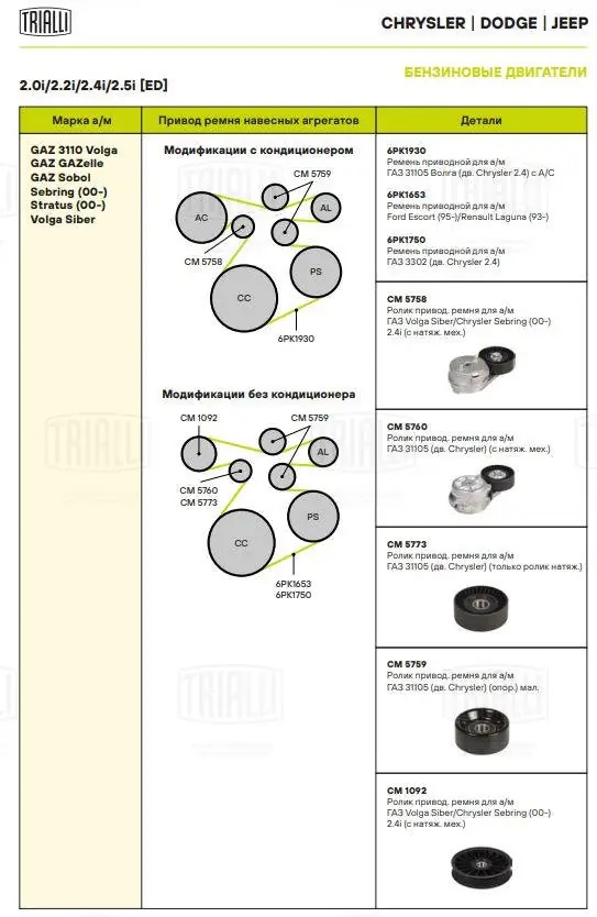 CM5760 TRIALLI Натяжитель ремня ГАЗ-31105 дв.Крайслер TRIALLI