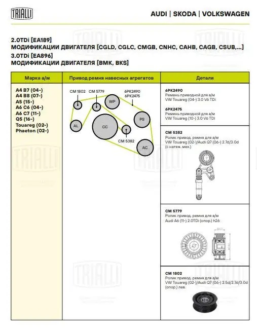 CM5779 TRIALLI Ролик привод. ремня Audi A6 (11-) 2.0TDi (опор.) h26 (CM 5779)