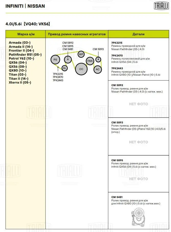 CM 5892 TRIALLI Ролик привод. ремня Nissan Pathfinder (05-) 4.0i (с натяж. мех.) (CM 5892)