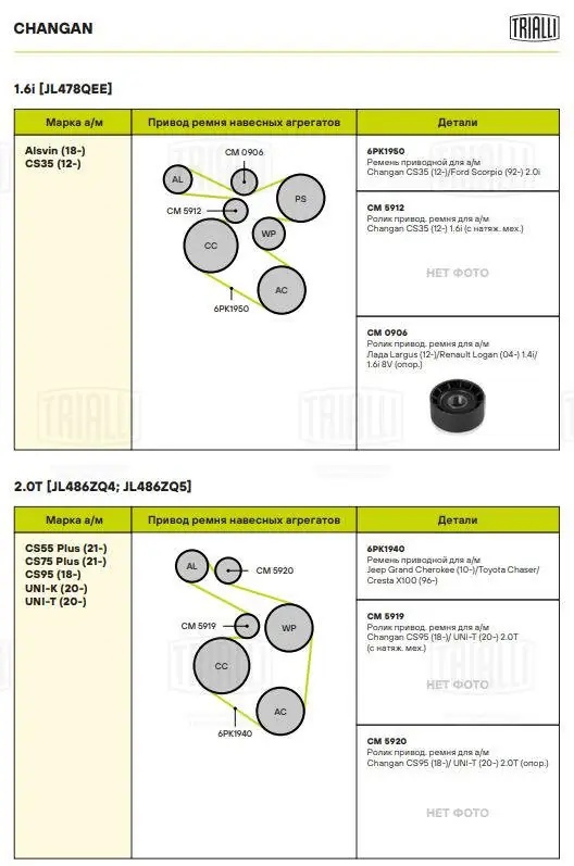 CM 5919 TRIALLI Ролик приводного ремня для автомобилей Changan CS95 (18-)/UNI-T (20-) 2.0T (с на