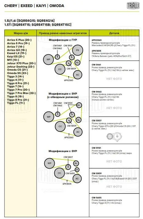 | Наименование | Ролик привод. ремня Chery Tiggo FL (13-) 1.5i/1.6i (опор.) верх. (CM 5921) |
