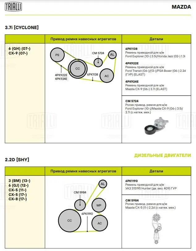 CM 5984 TRIALLI Ролик приводного ремня с натяжным механизмом
