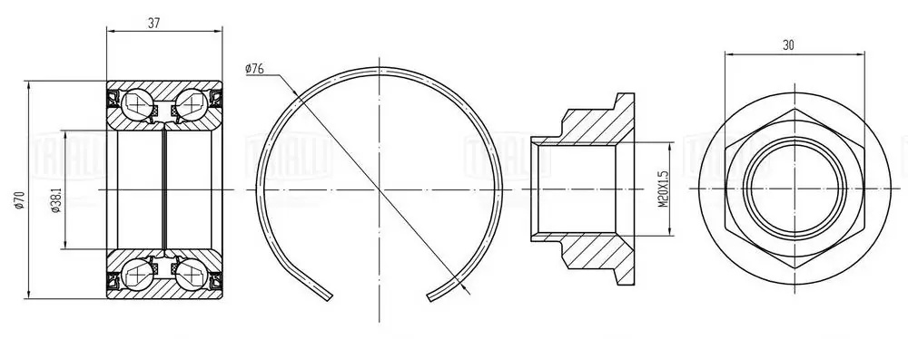 CS0886 TRIALLI Подшипник ступицы Kia Picanto (04-) перед. (кмпл:подш./гайка/стоп.кол.) (CS 0886
