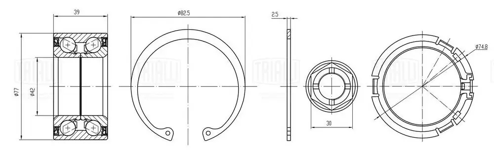 CS 0993 TRIALLI Подшипник ступицы передней (гайка/стопорное кольцо/защитное кольцо)