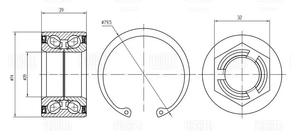 CS 1092 TRIALLI Ремкомплект ступицы передней (подшипник 1 шт, стопорное кольцо 1 шт, гайка)