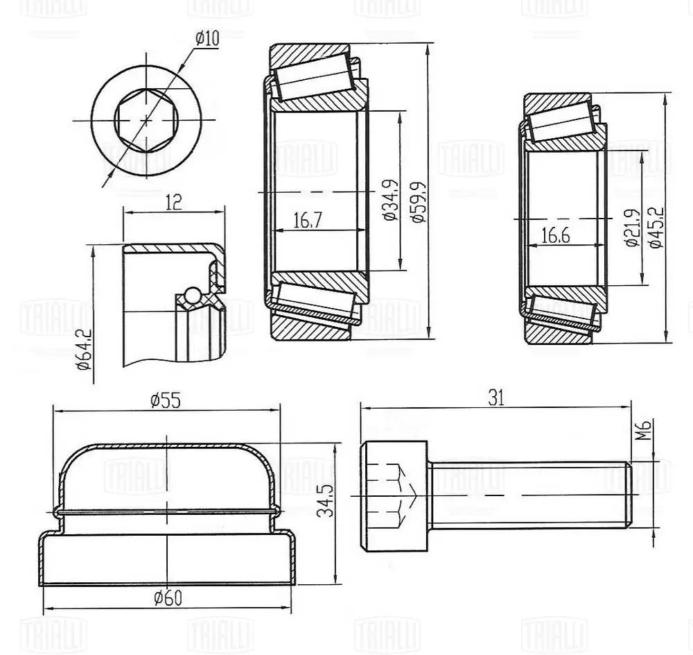 CS1585 TRIALLI Ремкомплект ступицы передней (колпачок 1 шт, болт 1 шт, сальник ступицы 1 шт, по