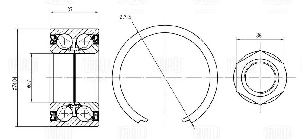 CS 1672 TRIALLI Подшипник ступицы Fiat Doblo (09-) перед. (кмпл:подш./стоп.кол./гайка) (CS 1672)