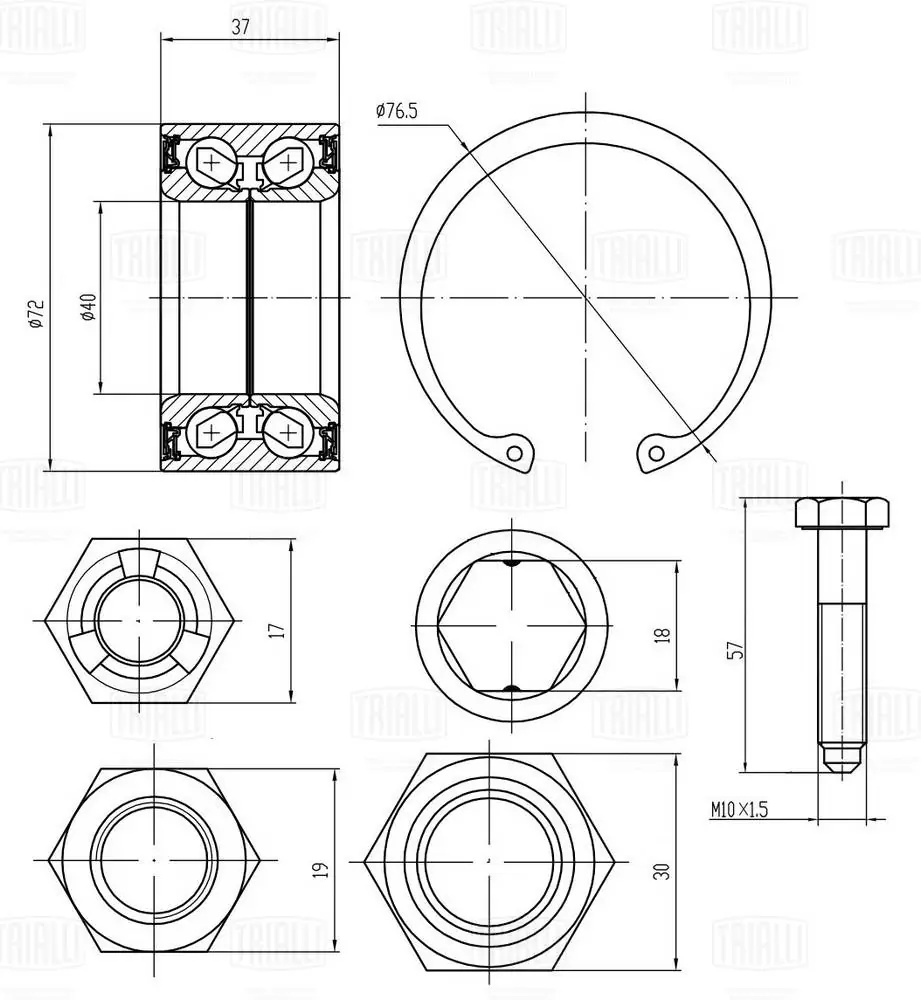 CS1885 TRIALLI Подшипник ступицы VW Passat B3 (88-) перед. (кмпл: подшип./кольцо2шт./гайка5шт./