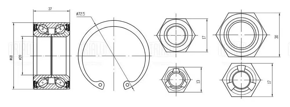 CS 2028 TRIALLI Ремкомплект ступицы передней (подшипник 1 шт, стопорное кольцо 1 шт, гайка 4 шт)