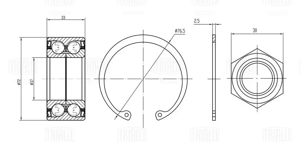 CS2076 TRIALLI Подшипник ступицы для а/м Peugeot 206 (98-) перед. (кмпл: подшип./гайка/кольцо)