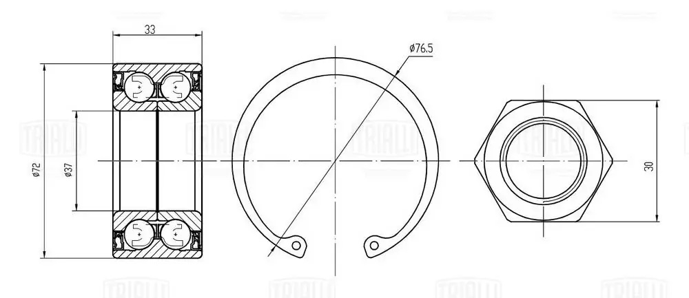 CS 2078 TRIALLI Подшипник ступицы Peugeot 207 (06-) перед. (кмпл:подш./стоп.кол./гайка) (CS 2078
