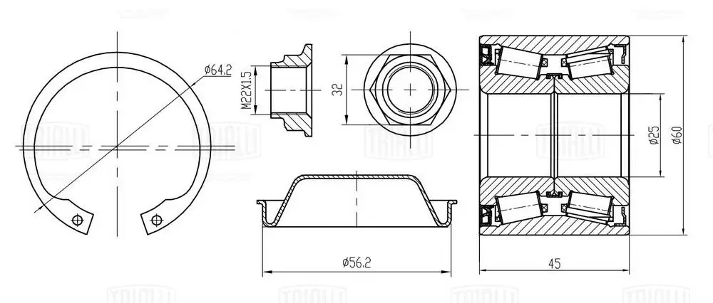 CS 2081 TRIALLI Подшипник ступицы Peugeot 307 (00-) задн. (кмпл:подш.60*45/крыш./гайка/стоп.кол.