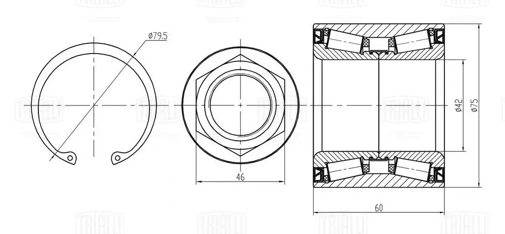 CS 2090 TRIALLI Ремкомплект ступицы задней (подшипник 1 шт, стопорное кольцо 1 шт, гайка)