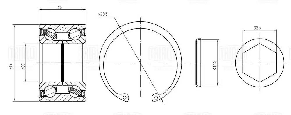 CS2178 TRIALLI Подшипник ступицы для а/м Opel Omega B 94- задн. кмпл:подш./стоп.кол./крыш. CS 2