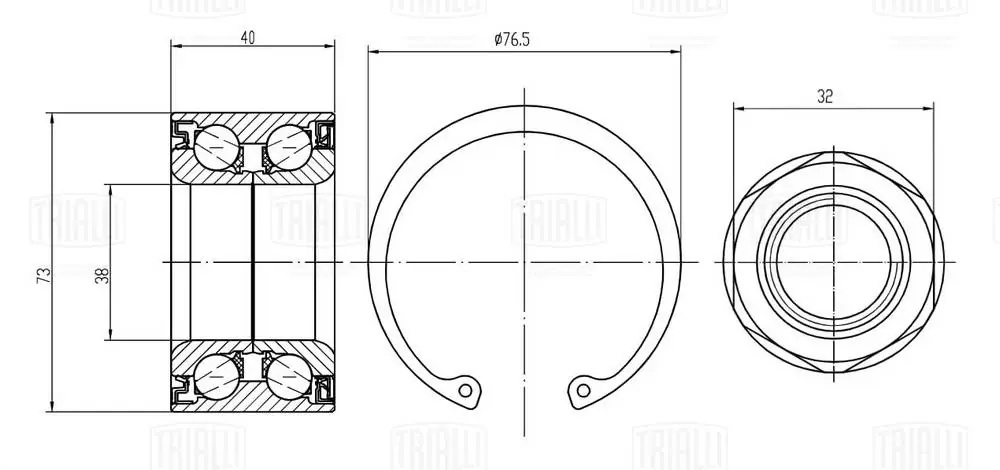 CS 2375 TRIALLI Ремкомплект ступицы задней (подшипник 1 шт, стопорное кольцо 1 шт, гайка 1 шт)