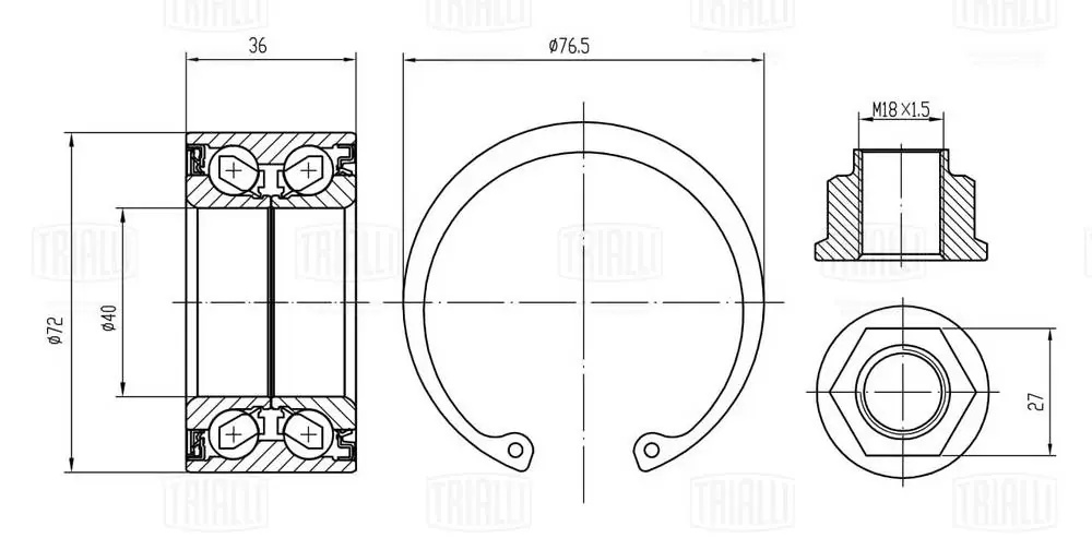 CS 2480 TRIALLI Подшипник ступицы для а/м Suzuki Swift (05-) перед. (кмпл:подш./гайка/стоп.кол.)