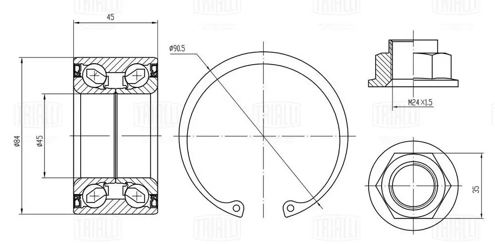CS2571 TRIALLI Подшипник ступицы для а/м Mazda CX-7 07- перед. кмпл:подш./стоп.кол./гайка CS 25