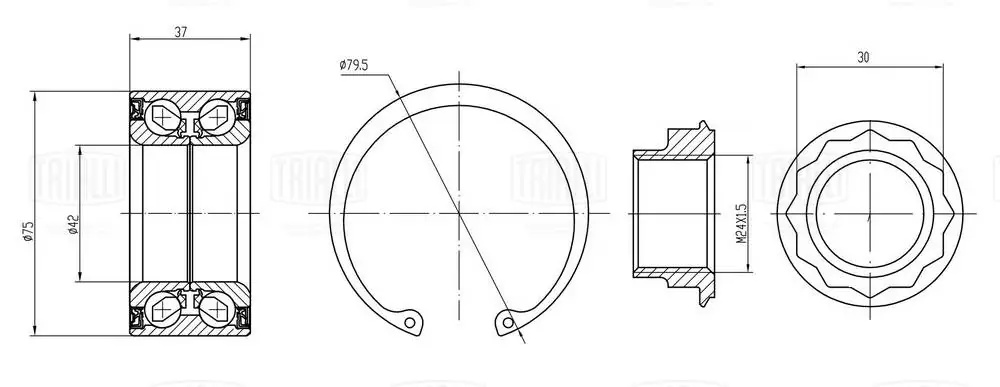 CS2670 TRIALLI Подшипник ступицы BMW 3 E90 (05-)/1 E81 (04-) 75мм задн. (кмпл:подш./стоп.кол./г