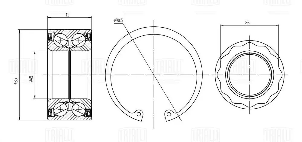 CS 2671 TRIALLI Подшипник ступицы BMW 3 E90 (05-) 85мм задн. (кмпл:подш./стоп.кол./гайка) (CS 26