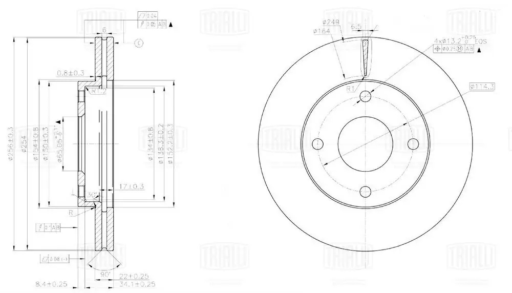 DF051314 TRIALLI Диск торм. Chery Bonus (11-)/Chery Very (11-) перед. d=256 (окраш.) (DF 051314)
