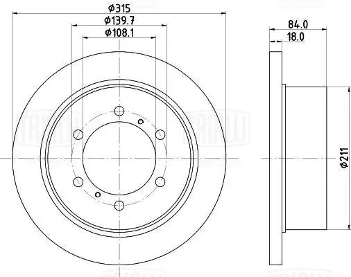 DF073413 TRIALLI Диск торм. для а/м Mitsubishi Pajero II 90-/Pajero Sport I 98- зад. d315 DF 0734