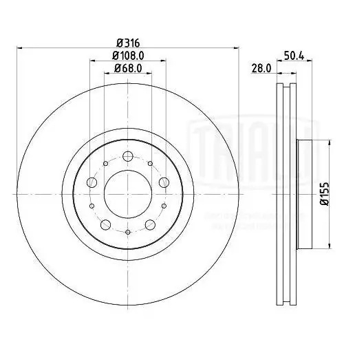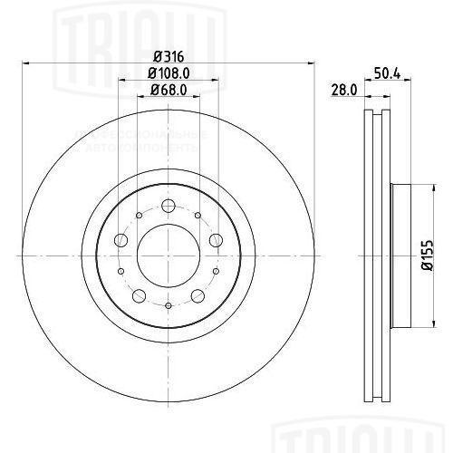 DF 106119 TRIALLI Диск торм. Volvo XC90 (02-)/S60 (00-) перед. d=316 (DF 106119) 2шт