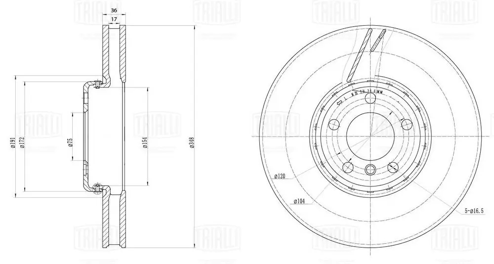 DF 170107 TRIALLI Диск торм. BMW 5 (F10) (09-) перед. d=348 лев. (двухсоставной/окраш.) (DF 170107