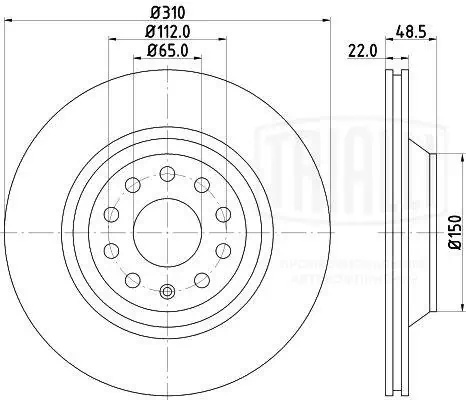 DF180128 TRIALLI Диск торм. Audi A3 (03-)/VW Golf V (03-)/Golf VI (08-) зад. d=310 (DF 180128) 2