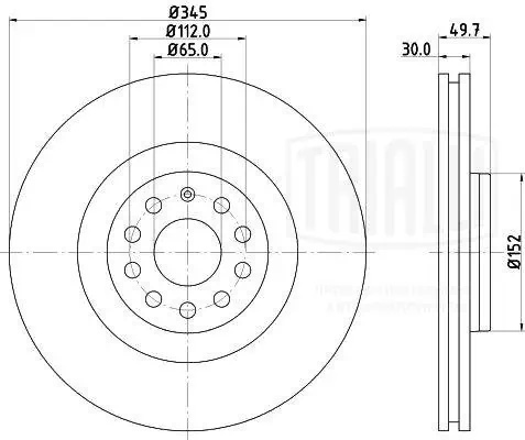 DF180129 TRIALLI Диск торм. Audi A3 (03-)/VW Golf V (03-)/Golf VI (08-) перед. d=345 (DF 180129)