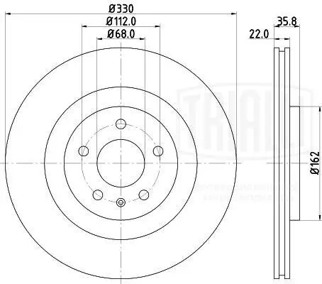 DF 180135 TRIALLI Диск торм. Audi A4 (07-)/A5 (07-)/A6 (11-)/Porsche Macan (14-) зад. d=330 (DF 18