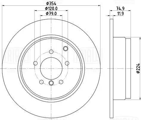 DF 190136 TRIALLI Диск торм. Land Rover Range Rover III (02-) зад. d=354 thk=11,9 (полный/окраш.)