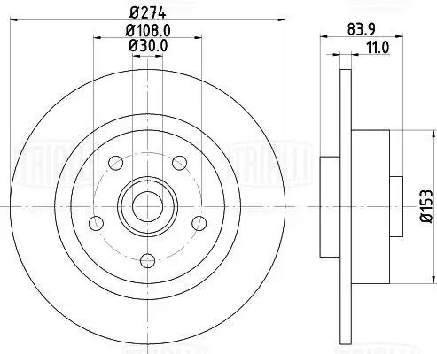 DF190337 TRIALLI Диск торм. для а.м RenauLTLaguna (01-) зад. d274 (DF 190337)