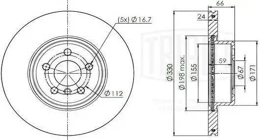 DF190436 TRIALLI Диск торм. BMW 5 (G30) (16-)/X3 (G01) (17-)/X4 (G02) (18-) перед. d=330 (окраш.)
