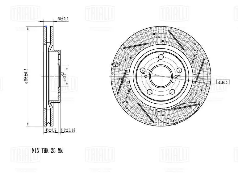 DF 2901S TRIALLI Диск тормозной передний d=296 (перфорированный, слотированный, окрашенный) PRO