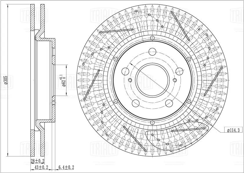 DF 5200S TRIALLI Диск торм. Toyota Camry (18-)/RAV4 (18-) перед. d=305 (перф/слот/окраш) (DF 5200