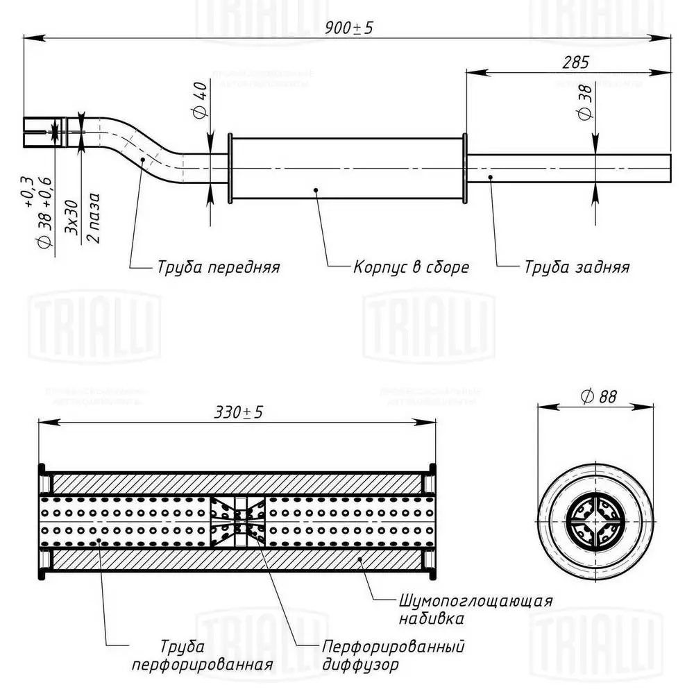 | Наименование | Резонатор для а/м Ока "TRIALLI" |