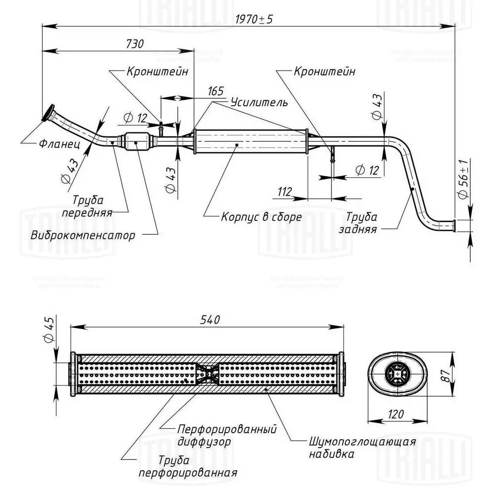 EAM 0127 TRIALLI Резонатор ЛАДА Vesta (-18) алюминизированный TRIALLI