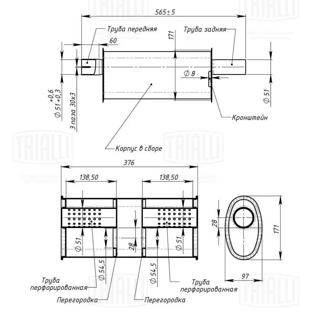 | Наименование | Резонатор для а/м ГАЗель (402 дв.) борт. "TRIALLI" алюминизированная сталь |
