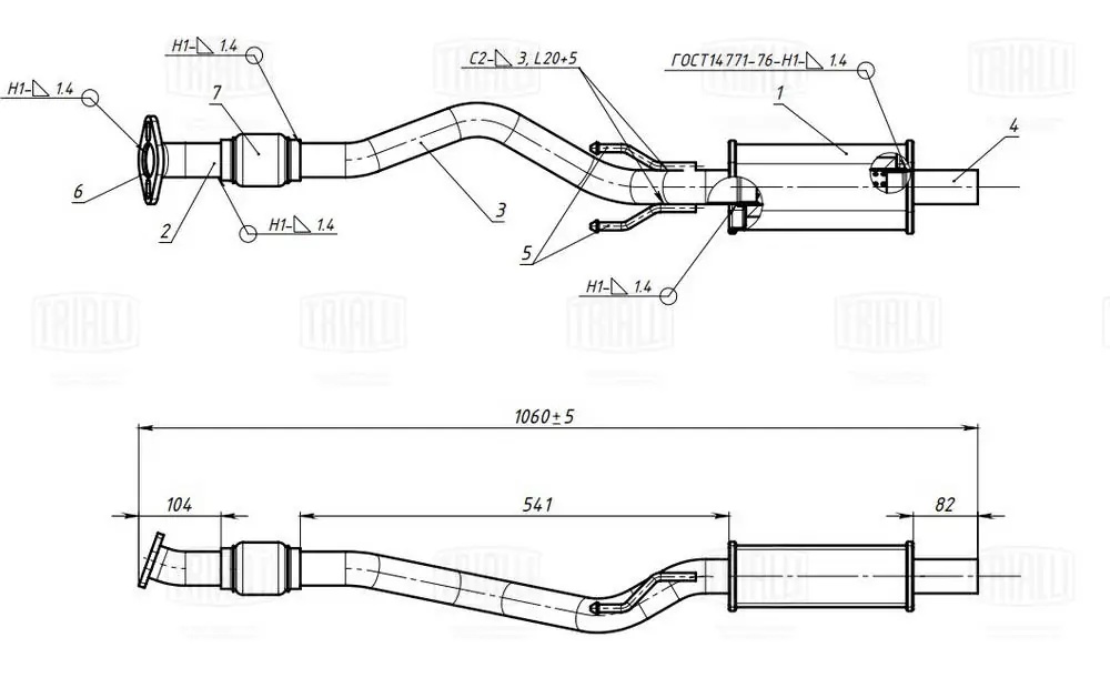 EAM 0333 TRIALLI Глушитель Kia Picanto (04-) 1.0i/1.1i доп. (резонатор) (алюм. сталь) (EAM 0333)