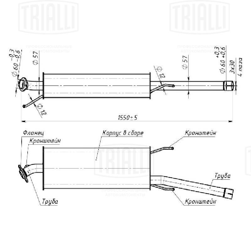 EAM 0348 TRIALLI Глушитель средняя часть (алюминизированная сталь)