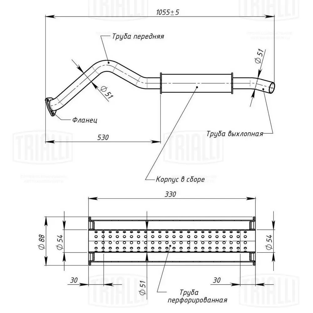 | Наименование | Резонатор для а/м УАЗ-469,3151 "TRIALLI" |