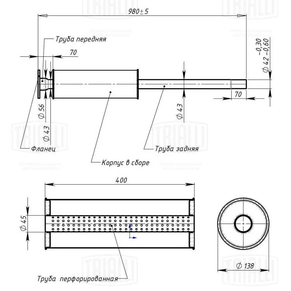 EAM 1001 TRIALLI Глушитель Ford Focus II (05-) 1.4i/1.6i доп. (резонатор) (алюм. сталь) (EAM 1001