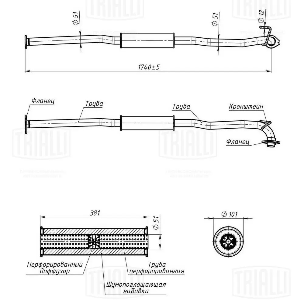 EAM 1416 TRIALLI Глушитель Nissan X-Trail T30 (01-) 2.0i/2.5i доп. (резонатор) (алюм. сталь) (EAM