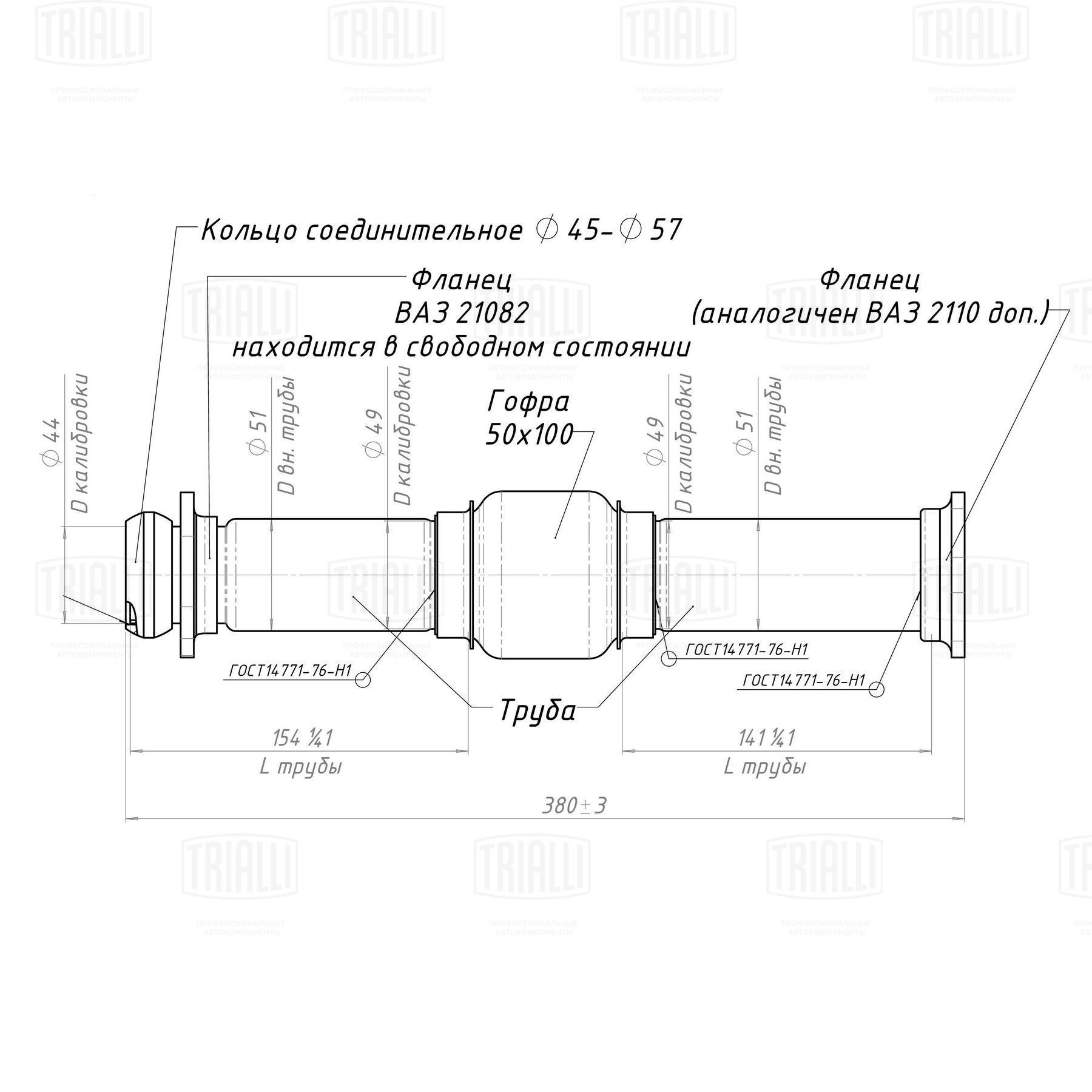 ECP 0108 TRIALLI Труба глушителя промежуточная (замена катализатора) ВАЗ 2108, 2109, 2110, 2112,