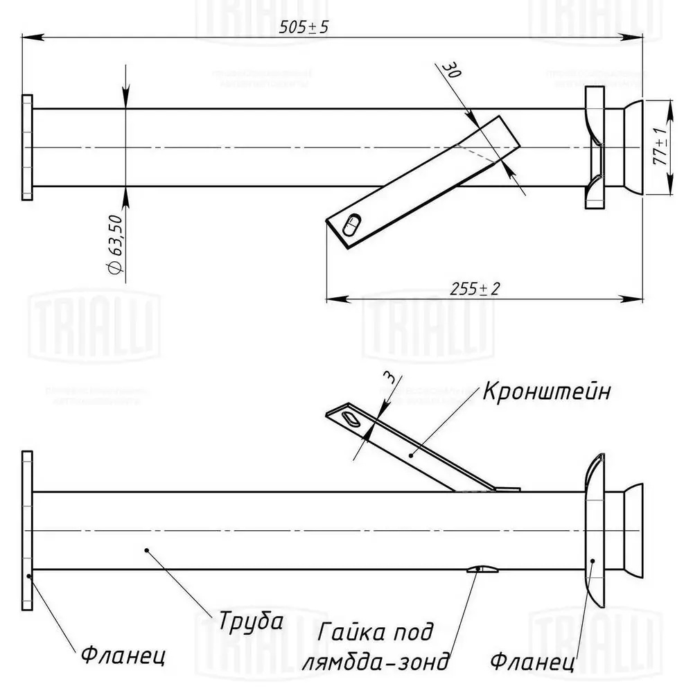 ECP0303 TRIALLI Труба перех. (вст. вм. кат-ра) Газель 3302 Евро-3 (алюм. сталь) (ECP 0303)