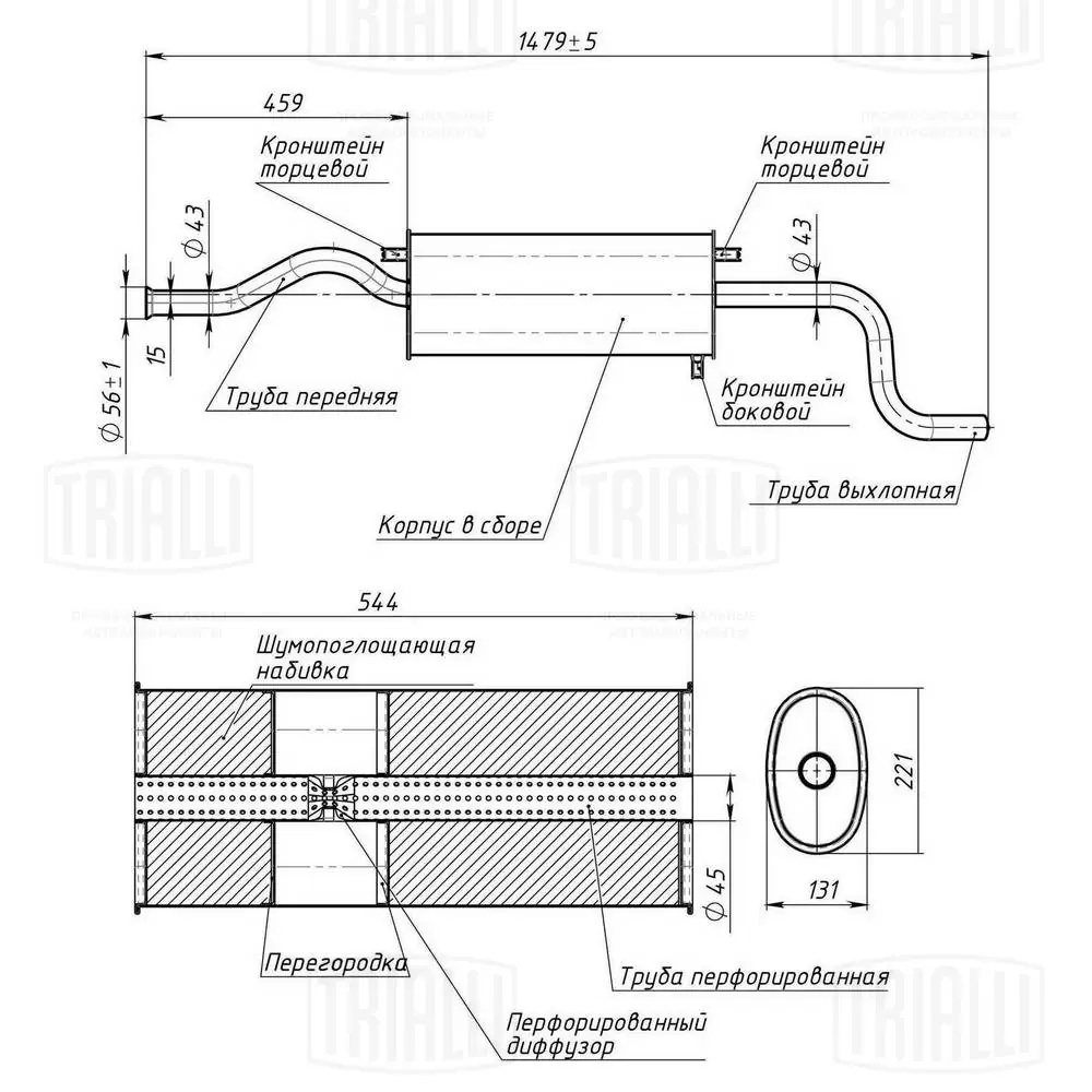 | Наименование | Глушитель ВАЗ-2115 алюминизированный TRIALLI |