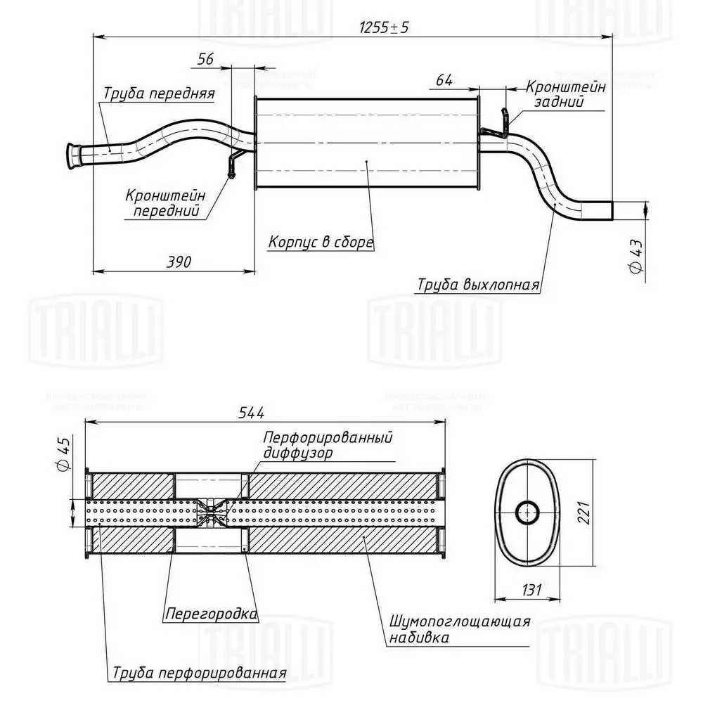 | Наименование | Глушитель ВАЗ-1118 алюминизированный TRIALLI |