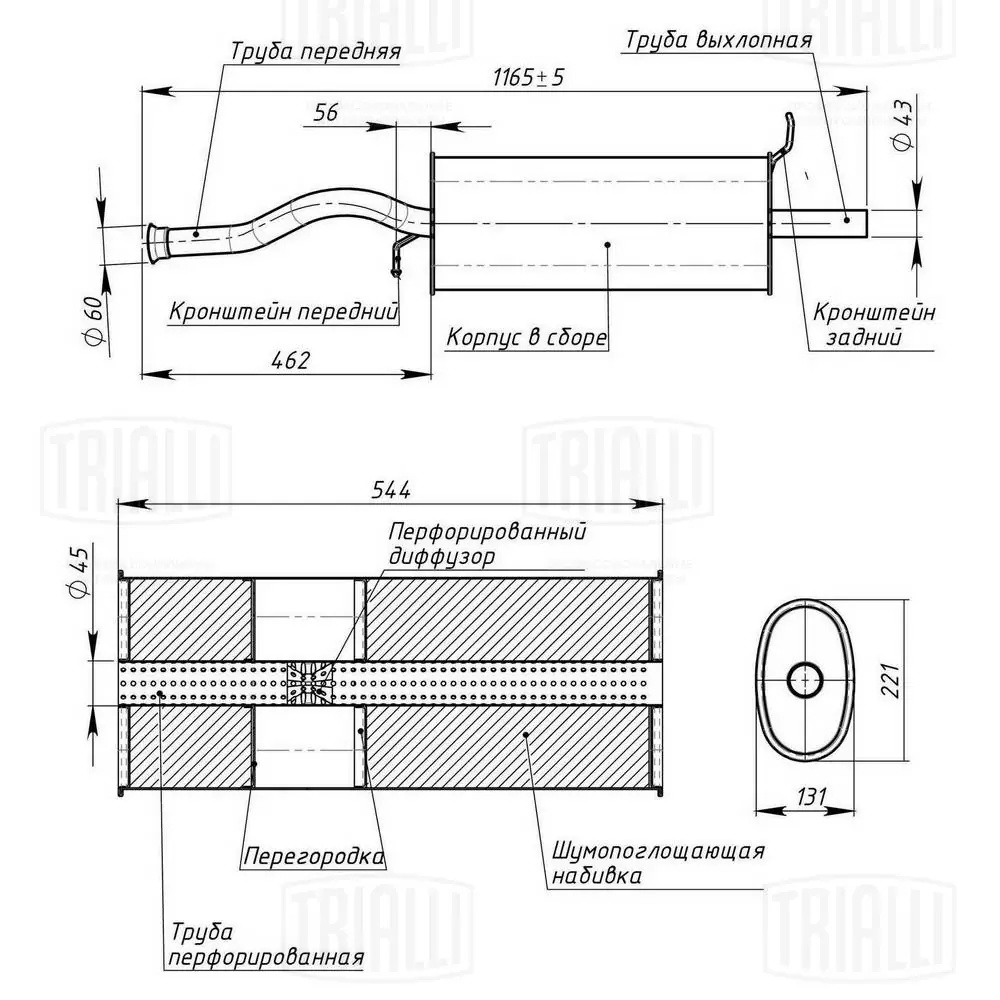 | Наименование | Глушитель ВАЗ-1119 алюминизированный TRIALLI |