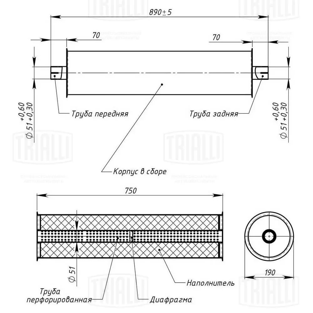 | Наименование | Глушитель для а/м ГАЗ 3302, 2217, 3307 Евро-3 (смещ.центр) "TRIALLI" |