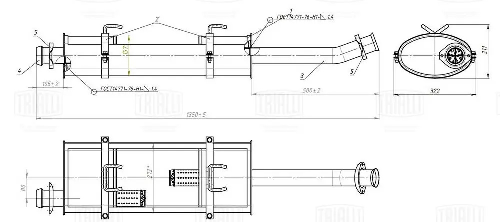 EMM 0315 TRIALLI Глушитель ГАЗ 33023 "Бизнес" дв. УМЗ А274,А275 Евро-4,5 основной с хомутами "TRI